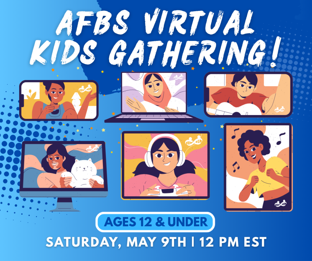 Hosted by AFBS Youth Ambassador Greta Baier, this is a fun, casual, and supervised environment where kids can connect, play virtual games, share stories, and make new friends who understand their journey. It’s a great opportunity for our younger community members to socialize and have some fun together!